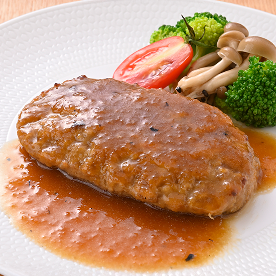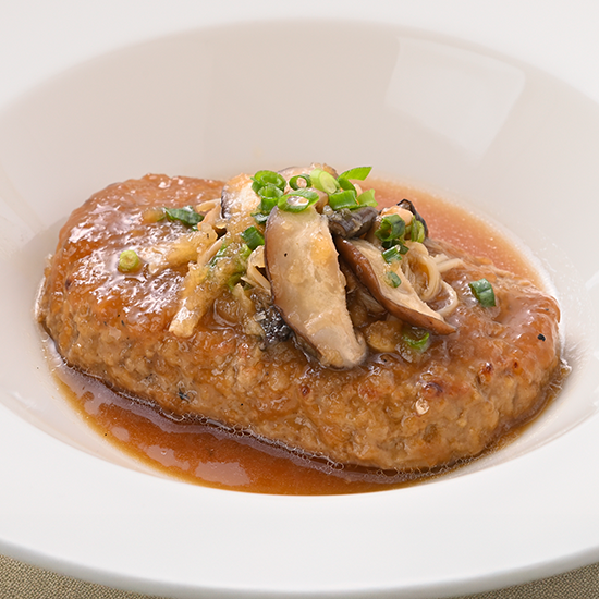 スチームオーブンでふっくら焼き上げた黒豚ハンバーグをオリジナルのおろしソースで仕上げました。